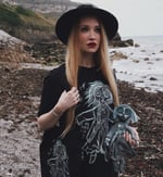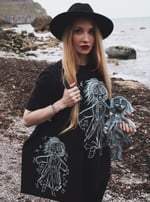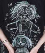 Unisex spun cotton black T-shirt, design printed using vegan and eco friendly inks. Tshirt only, does not include doll or tote bag.