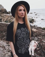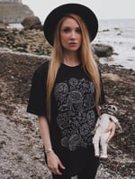 Unisex spun cotton black T-shirt, design printed using vegan and eco friendly inks. Tshirt only, does not include doll or tote bag.