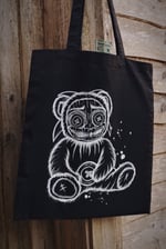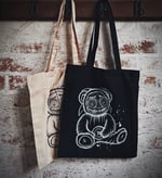 Printed onto natural canvas using eco and vegan friendly ink. This is not a doll or bear, tote bag only.